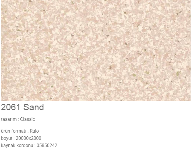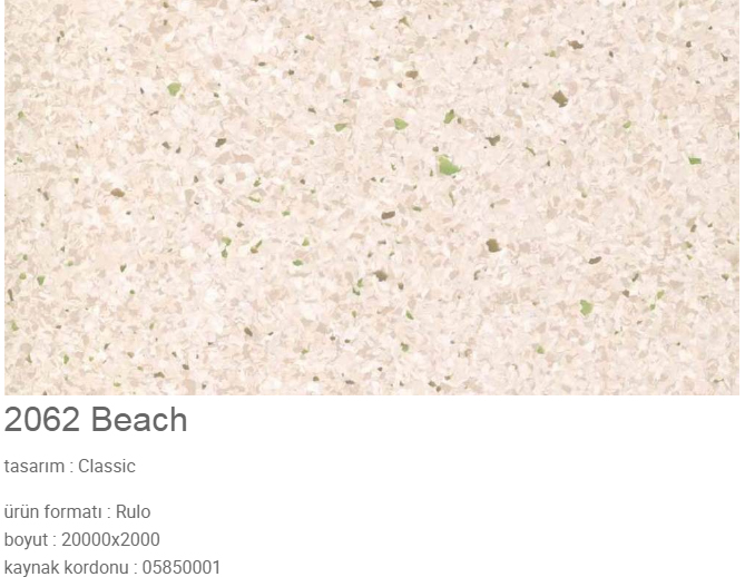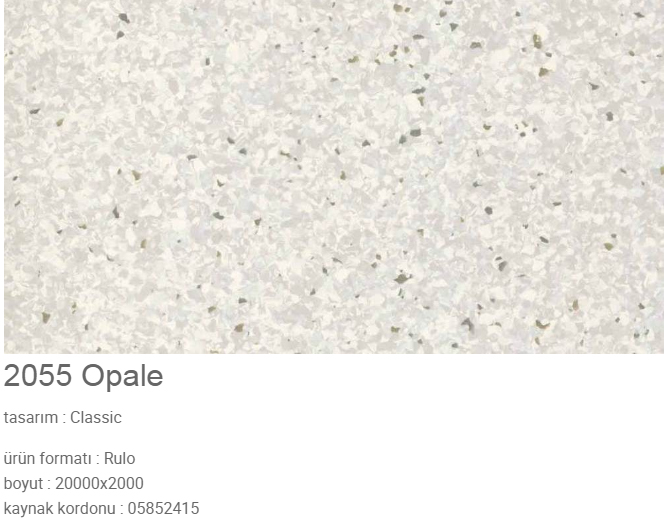 - Tek Katman Homojen Zemin Kaplaması: 2 mm kalınlığında, preslenmiş ve silindirlenmiş tek katmanlı homojen PVC yapı.